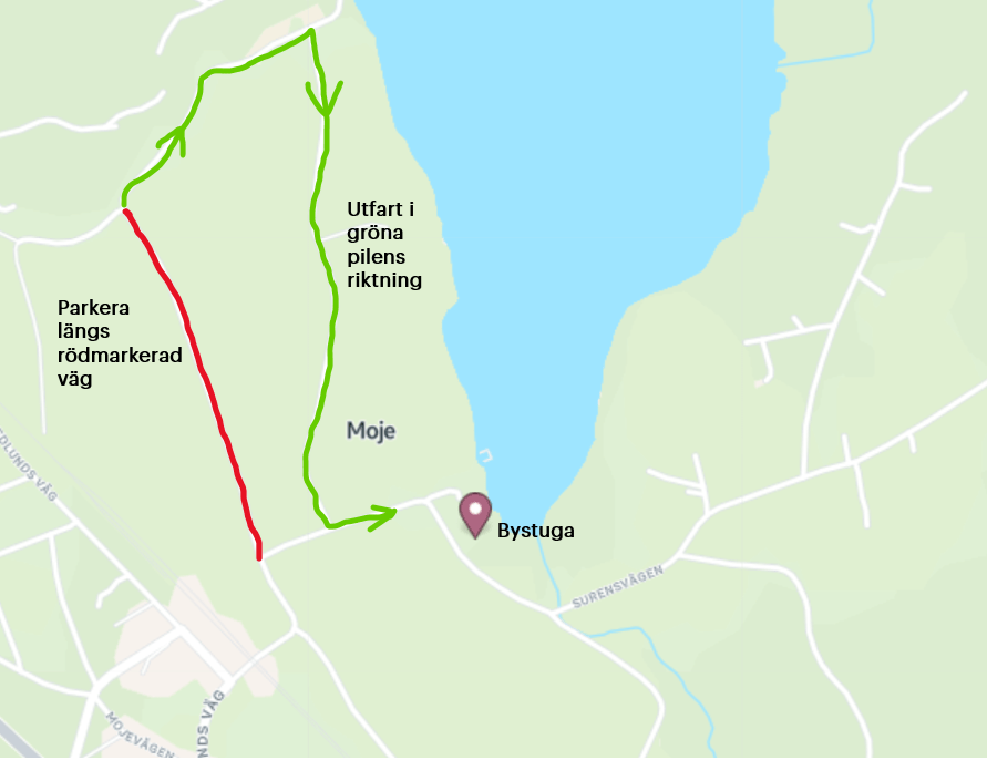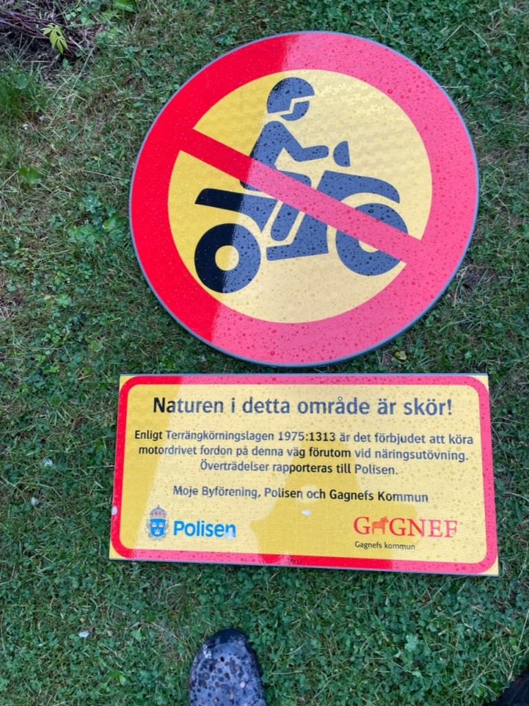 Stigen öster om Mojesjön är en vacker ofta använd vandringsled. Tyvärr har det då och då hänt att marken och leden skadats av ovarsam framfart att motorfordon. Enligt Terrängkörningslagen 1975:1313 är det förbjudet att köra motordrivet fordon på vägar som denna förutom för de som äger marken vid näringsutövning. Moje byförening har sen länge diskuterat hur man kan förhindra att det olagligt och på ett ovarsamt sätt kör sönder den sköra naturen kring leden. Under våren 2022 togs beslut att ta fram förbudsskyltar som förtydligar ovan.
